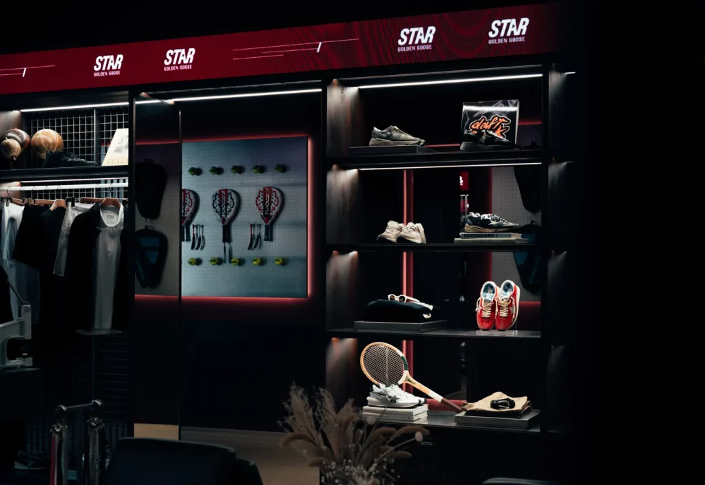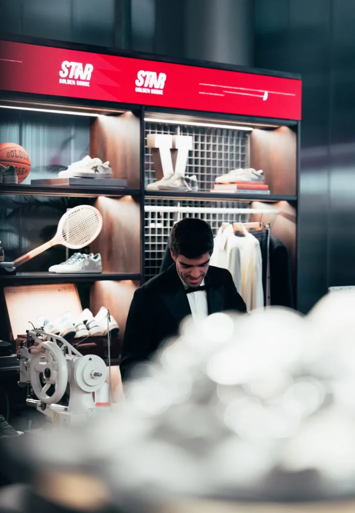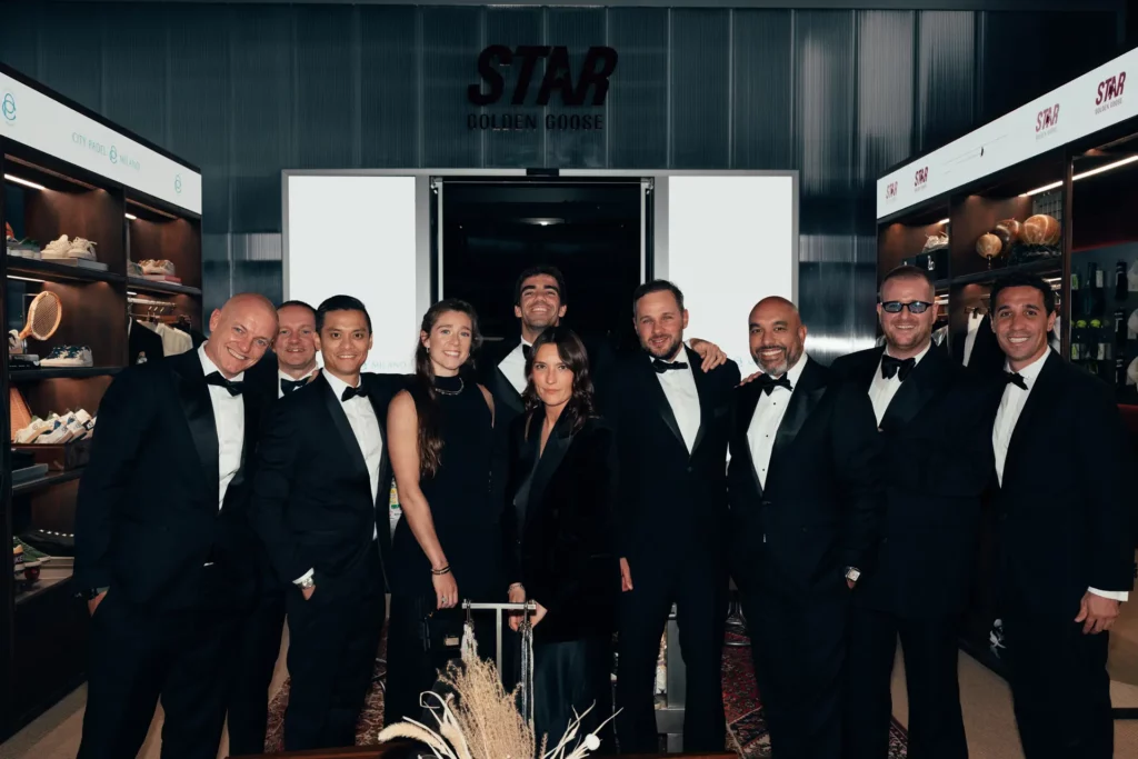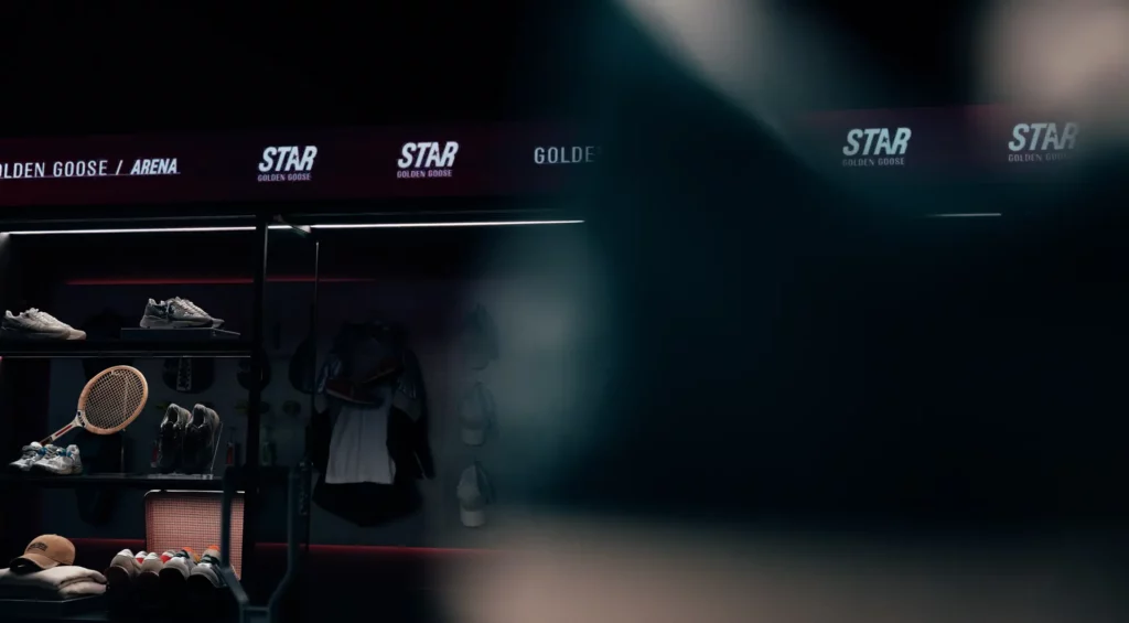 Photography capturing the exclusive opening of the new Golden Goose Arena, gathering ambassadors, executives, and investors in a night of celebration and elegance. The atmosphere blends luxury and authenticity, with candlelit dinners set directly on the padel courts — a unique fusion of sport and sophistication. Each frame reveals genuine connections, refined details, and the brand’s creative soul. A photography story that embodies community, vision, and the timeless allure of Golden Goose.